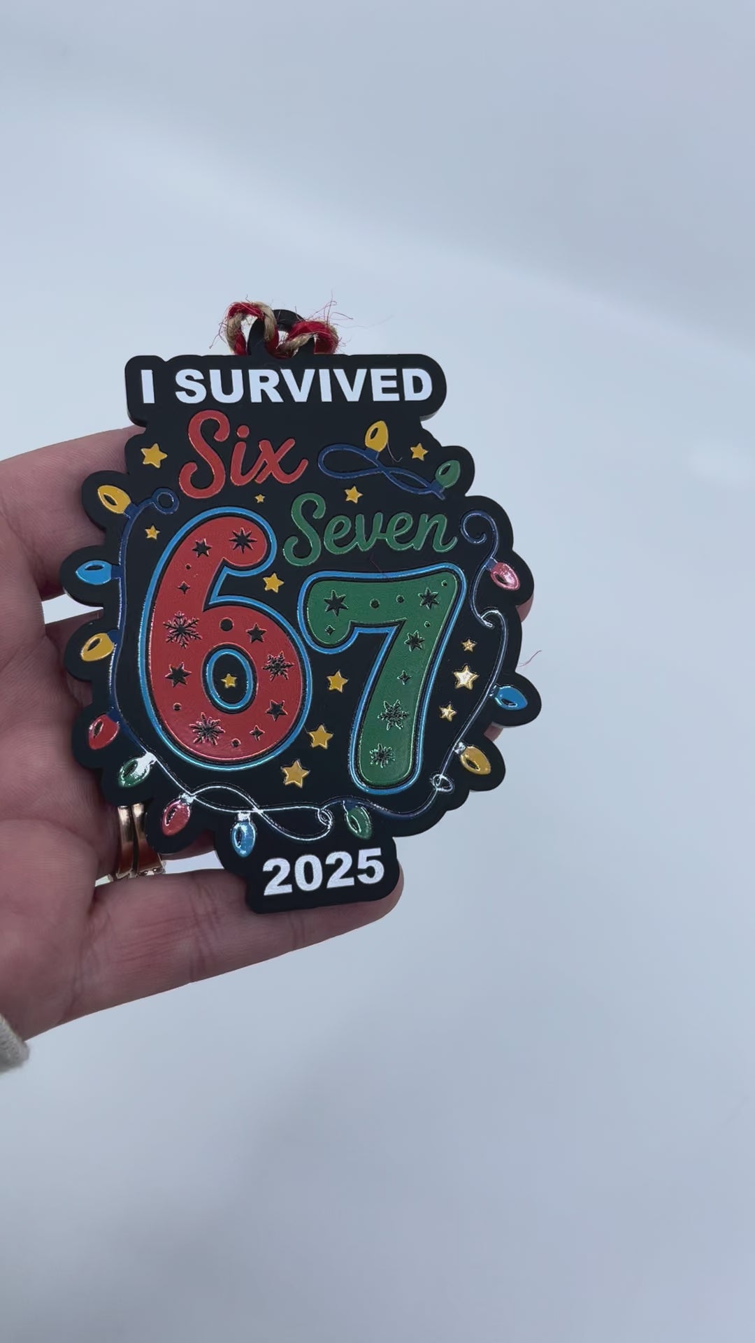 Add a pop of humor and vibrant color to your Christmas tree this year with our exclusive "I Survived Six Seven" 2025 Ornament. Whether this is a funny inside joke, a milestone birthday celebration (hello, 67!), or just a quirky way to remember the year, this ornament is sure to be a conversation starter.